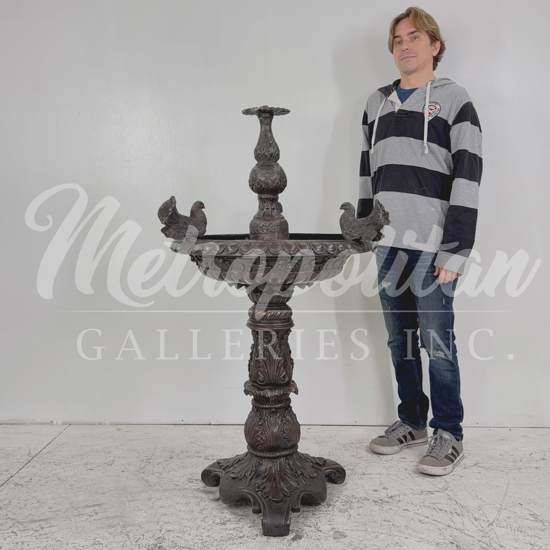 The Bronze Fountain with Birds by Metropolitan Galleries was sculpted in clay and cast in bronze. Ideal for placement indoors and outdoors.