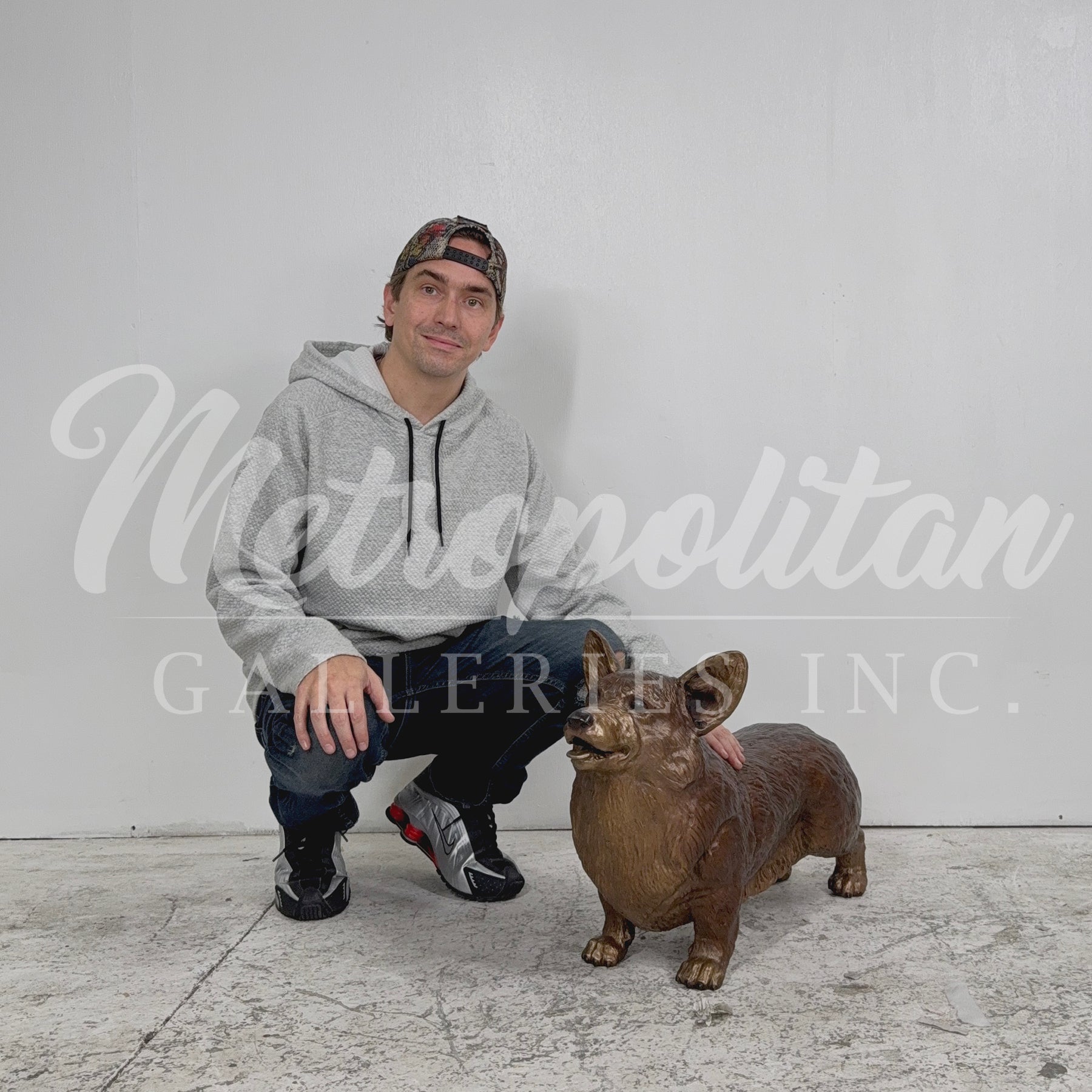 The Corgi Dog Bronze Statue by Metropolitan Galleries was sculpted in clay and cast in bronze. Ideal for placement indoors and outdoors.