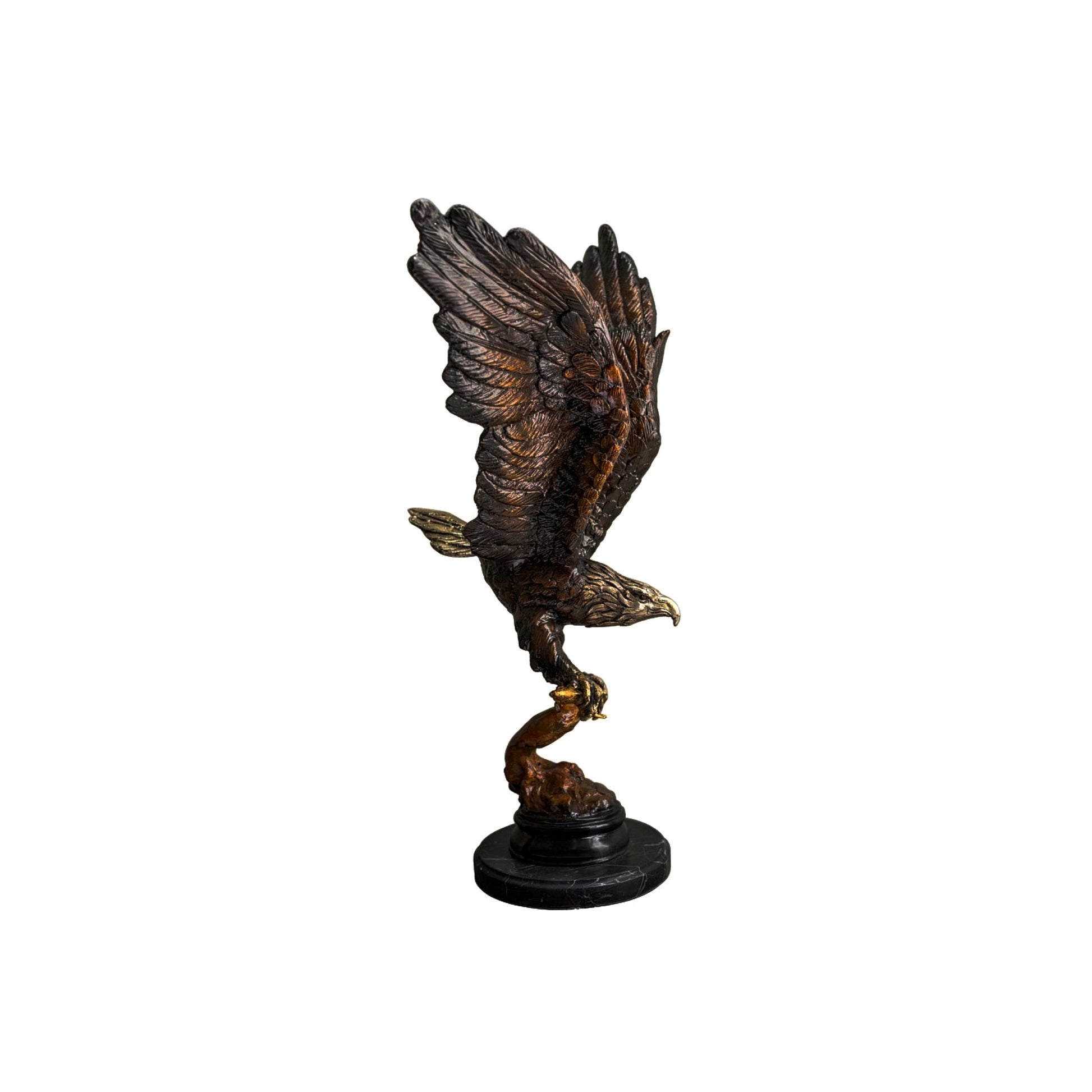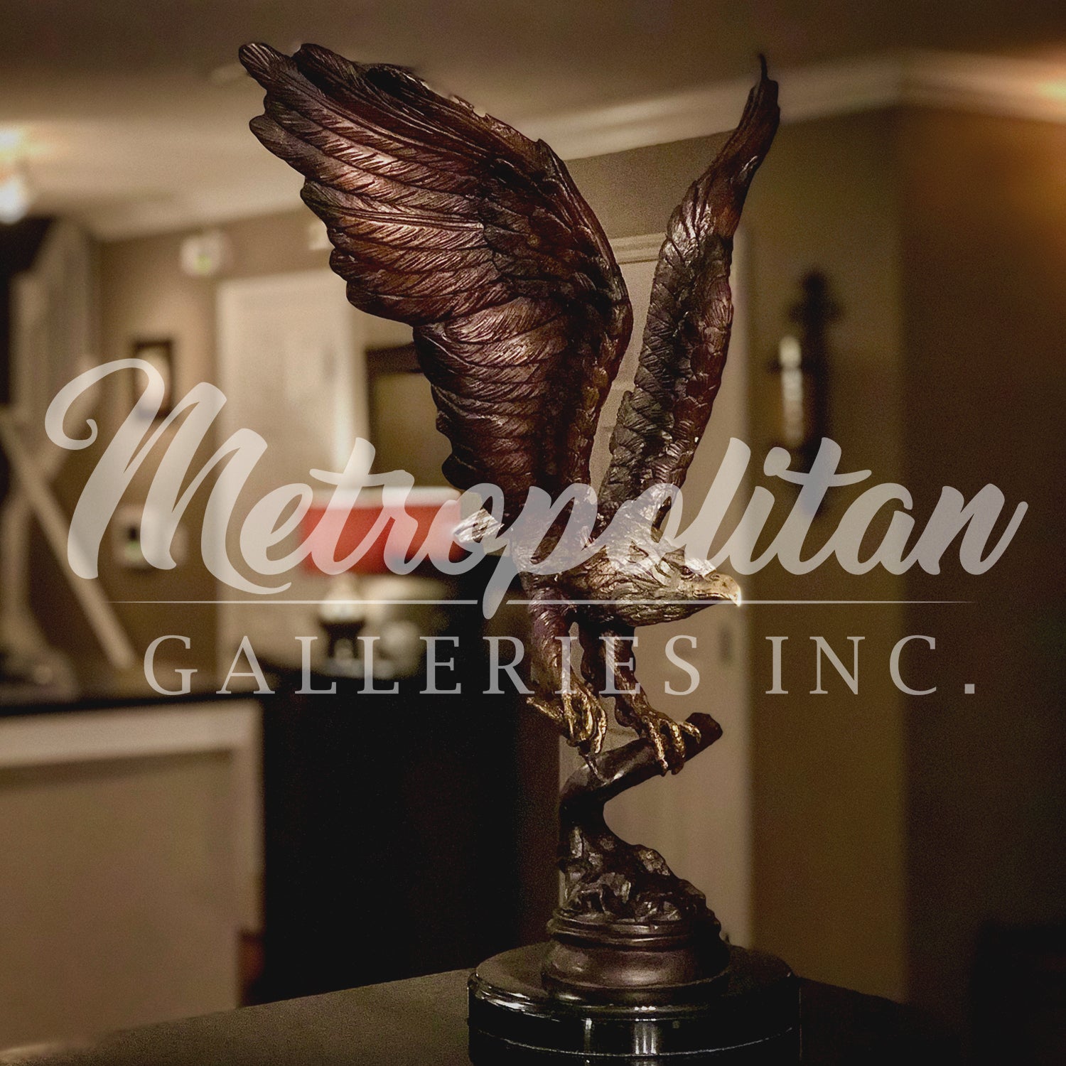 The Flying Eagle Bronze Table-top Statue by Metropolitan Galleries was sculpted in clay and cast in bronze. Ideal for placement indoors only.