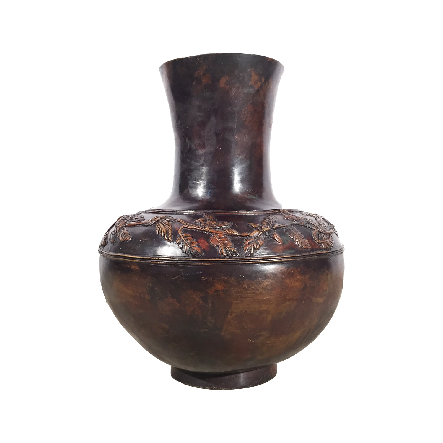 Robust Bronze Vase with Leaf Pattern by Metropolitan Galleries was sculpted in clay and cast in bronze. Ideal for placement indoors and outdoors.