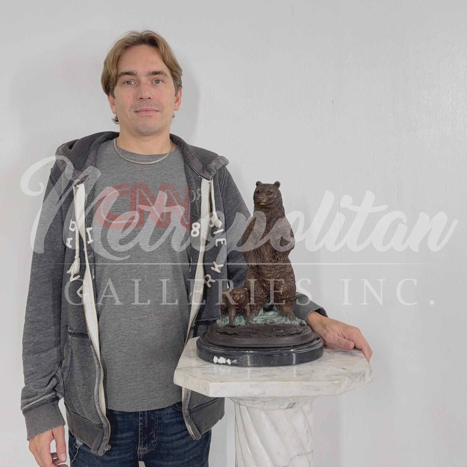 The Standing Bear & Cub Table-top Bronze Statue by Metropolitan Galleries was sculpted in clay and cast in bronze. Ideal for placement indoors and outdoors.